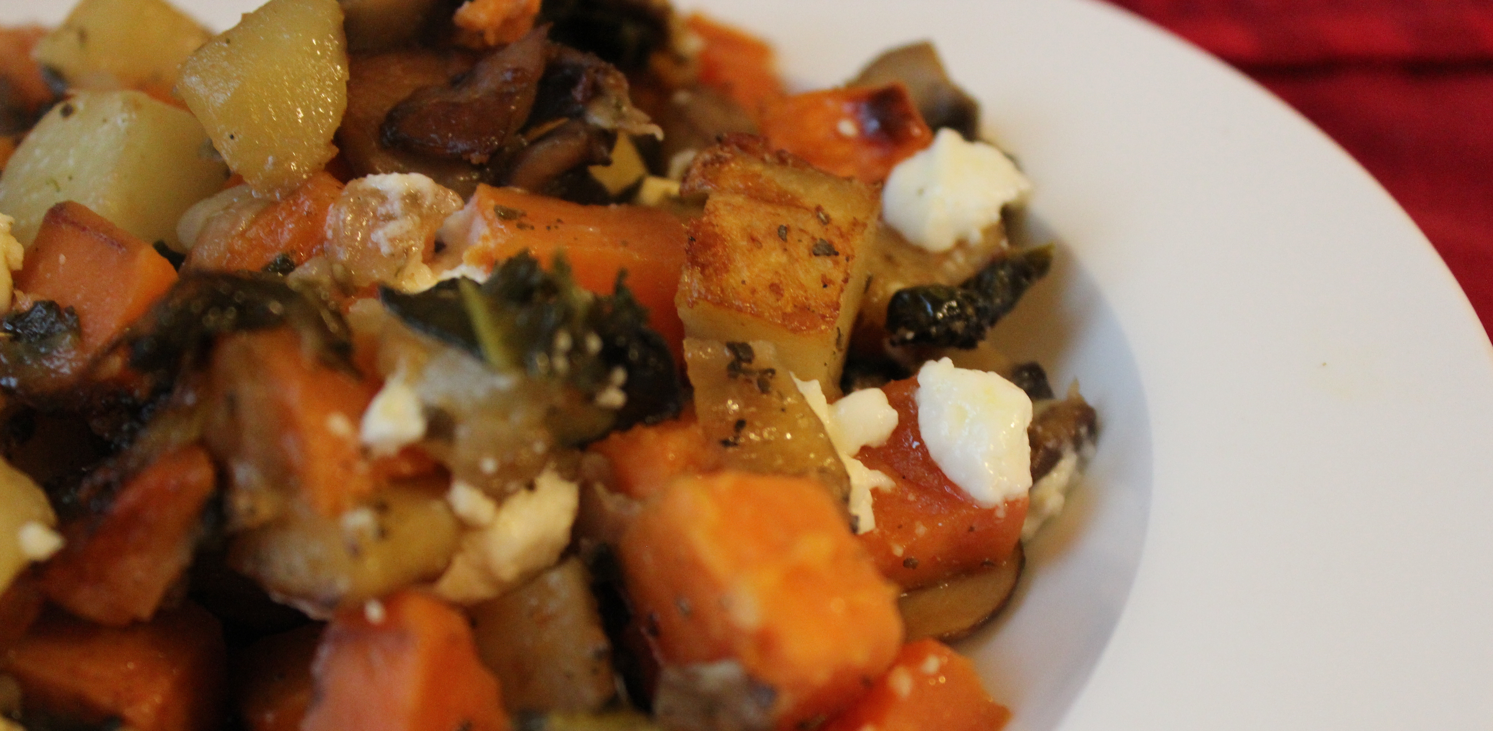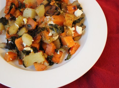 Speed it up: Although it would no longer work as a main dish, you could easily leave out the mushrooms, onions (but not the garlic!), and/or the kale. Just sautee the garlic for a minute, then add in the sage, salt, potatoes, and sweet potatoes and proceed from that step.
