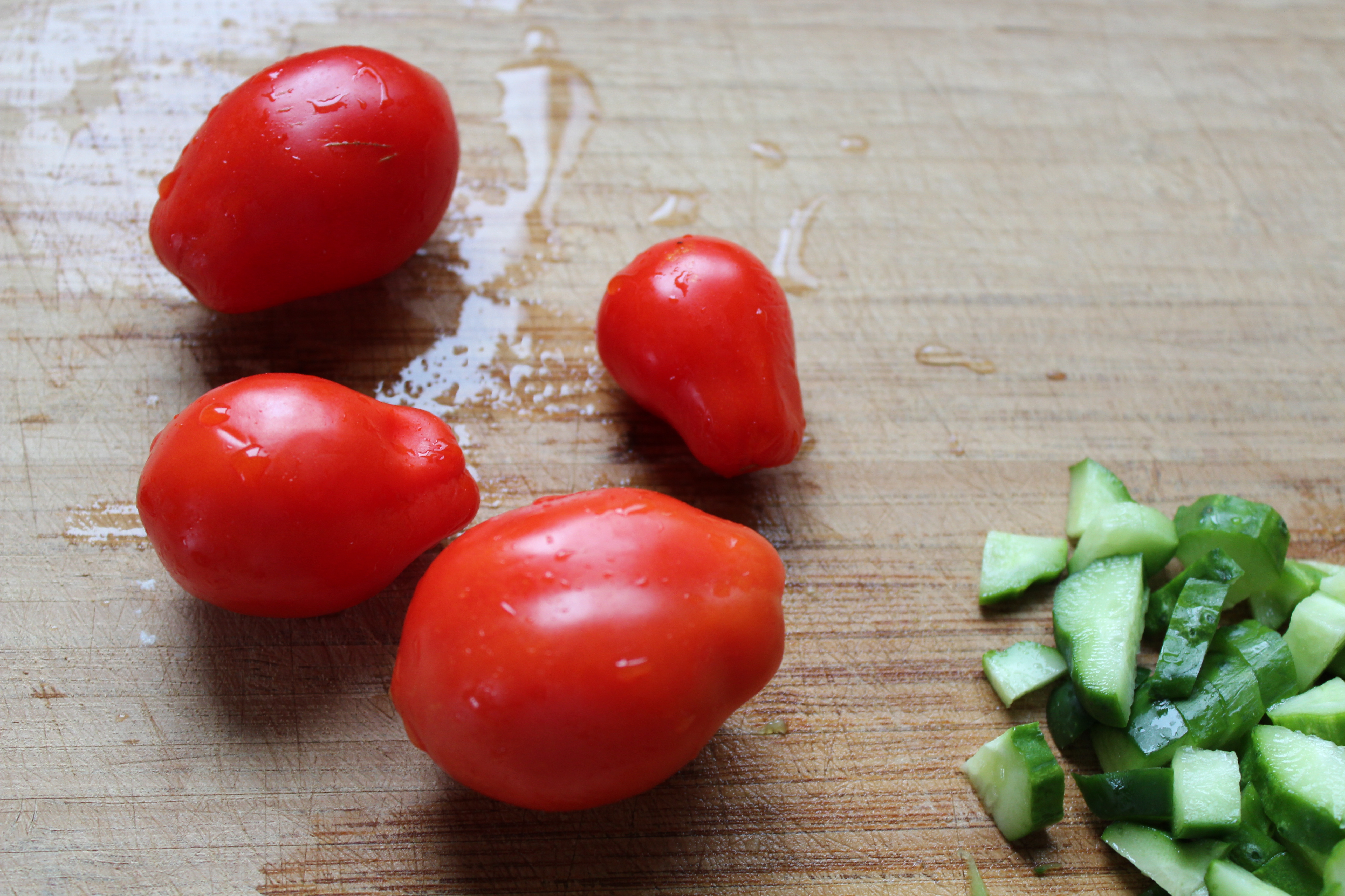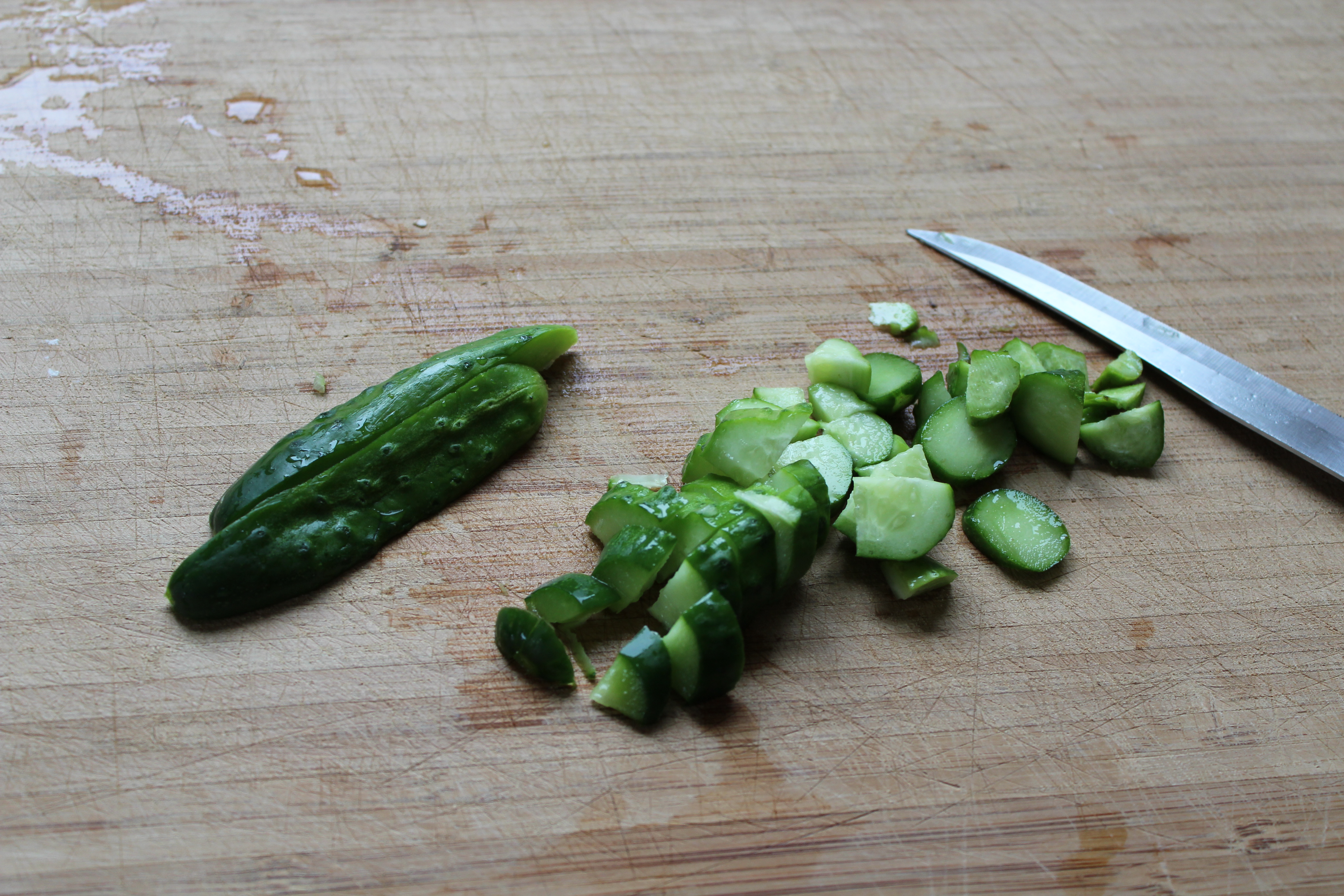 3-4 pickling cucumbers, washed and chopped into 1/4 to 1/2″ dice