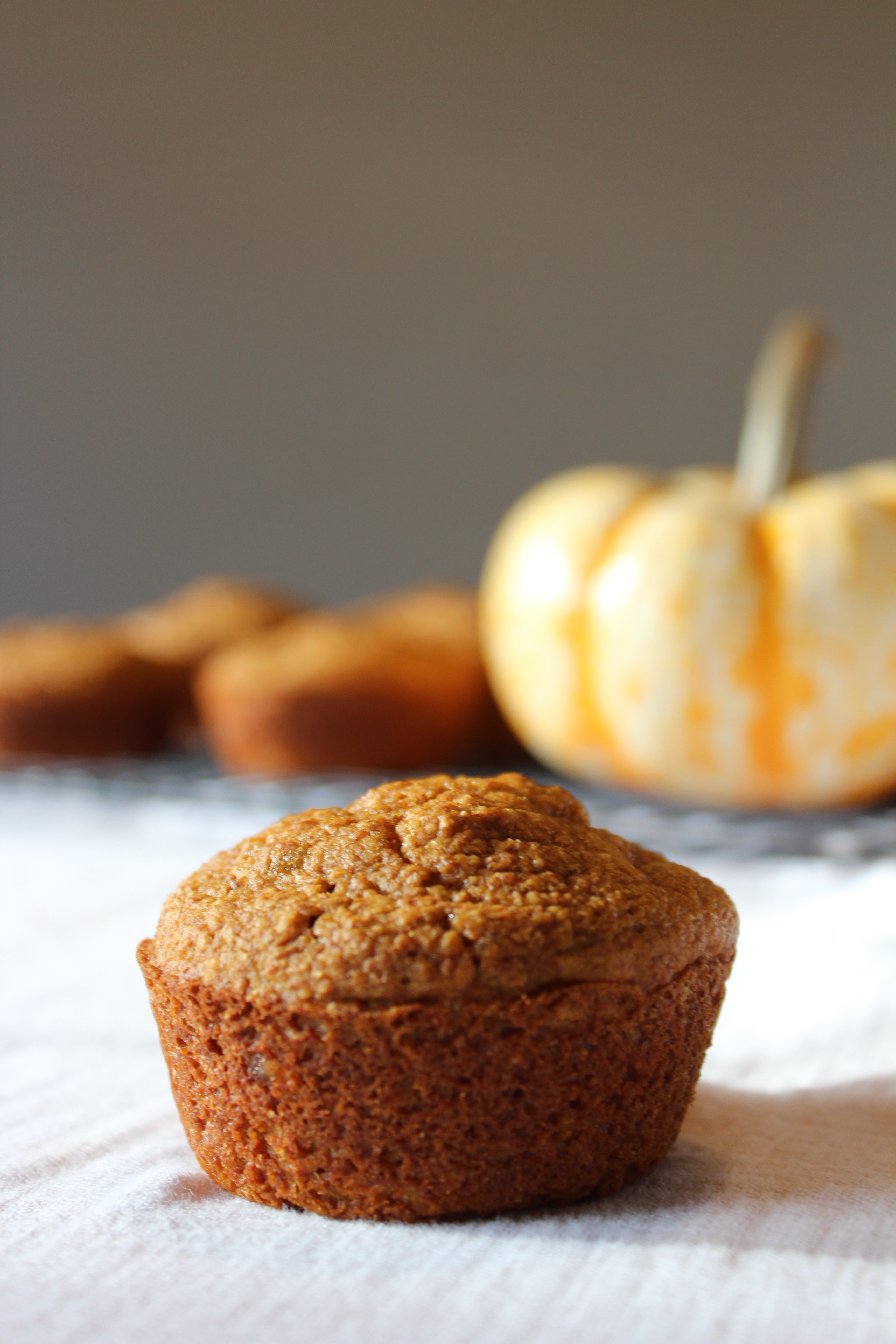 I love muffins, probably to a fault. No one else in my house seems to share my passion, though. In fact, the other day, when I asked my four-year-old daughter what she wanted for breakfast, she said, “Anything except a muffin.” So apparently they have gotten a little old around here. No matter. I still make a batch on a regular basis, freeze the muffins, and eat a few for breakfast a couple times a week. So this morning, with fog so dense outside my window that I could only see the dark skeletons of trees, I decided it was definitely time to usher in the season with a pumpkin recipe, and muffins seemed the best medium.