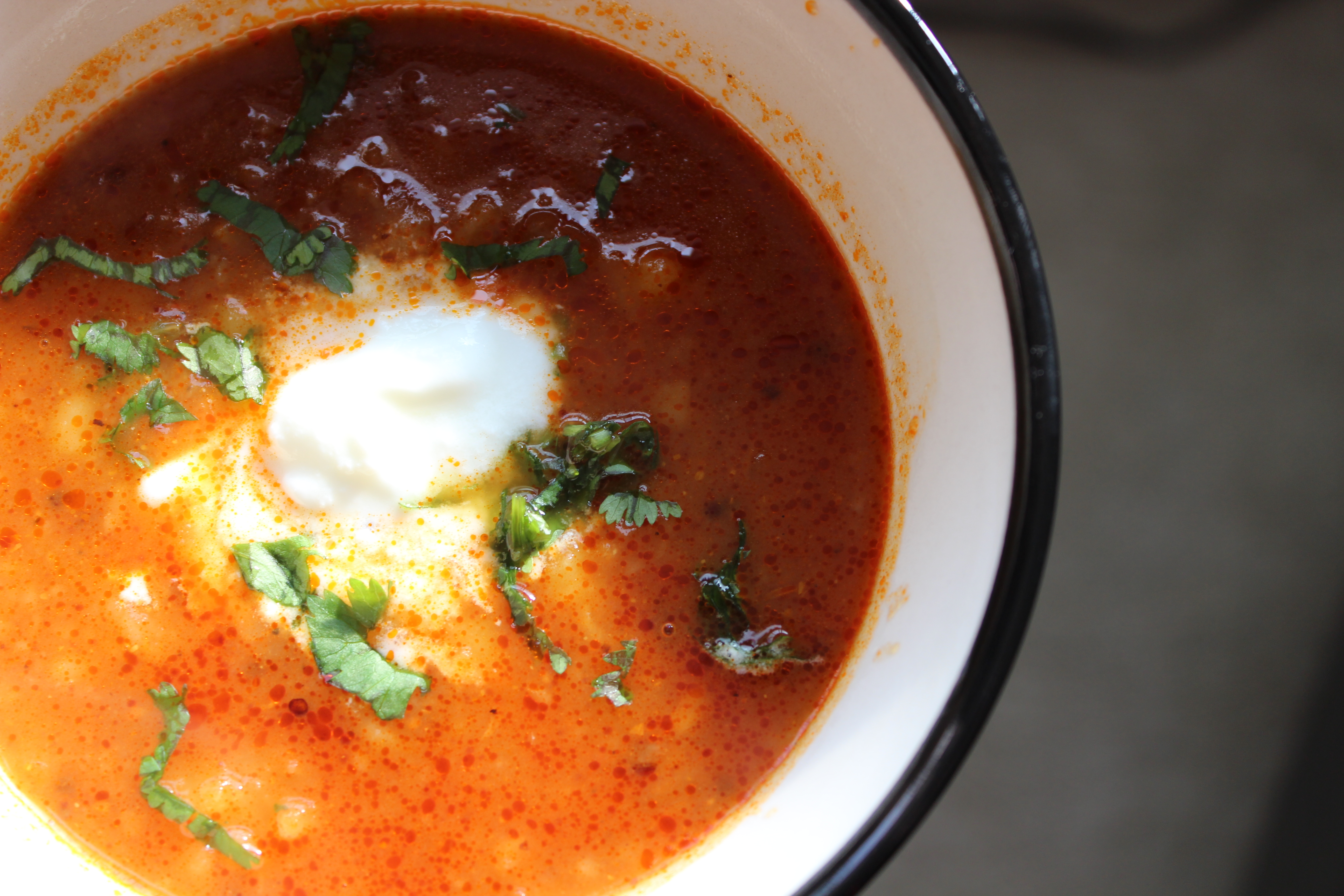 This potato curry is simple but delicious. The spicy tomato broth steams of cumin and garam masala, and the potatoes are tender and hearty. You can eat this alone, or serve it with rice, naan (traditional Indian flatbread), or a crusty bread that you might pair with any other soup. It’s quite versatile, too: leave out the cilantro if you like, omit the cayenne or increase it to add heat, or play around with the spices. I like this served with a large dollop of plain yogurt, which cools the spiciness and adds a nice creaminess to the dish.