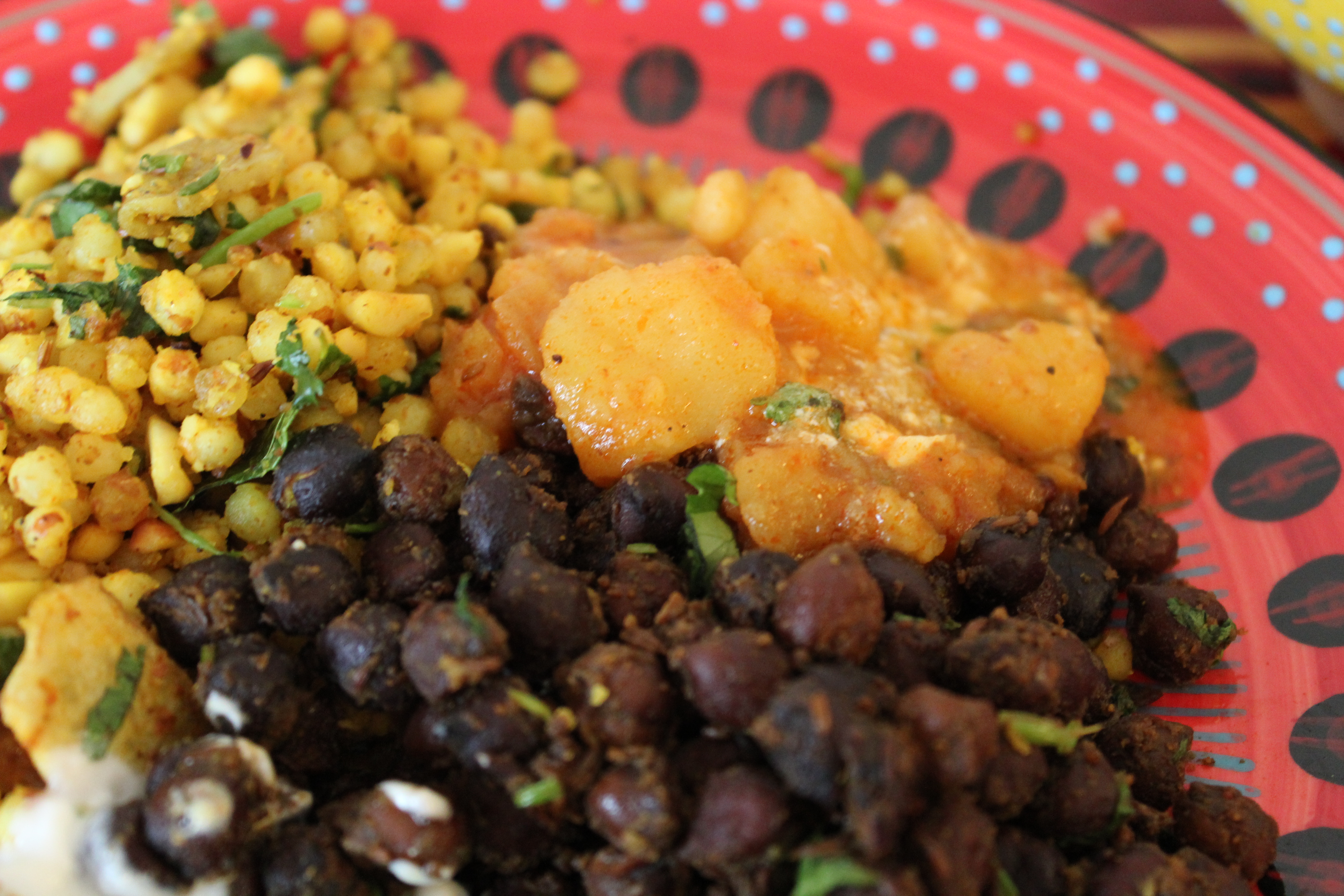 This would be lovely served with either of the recipes I’ve already posted from Minni: Sabudana, (savory tapioca curry), or Kale Chane (spicy black garbanzo beans). However, I would probably serve it just with rice or a flat bread (for sopping up the broth) and plain yogurt. This would make a great lunch dish, too.
