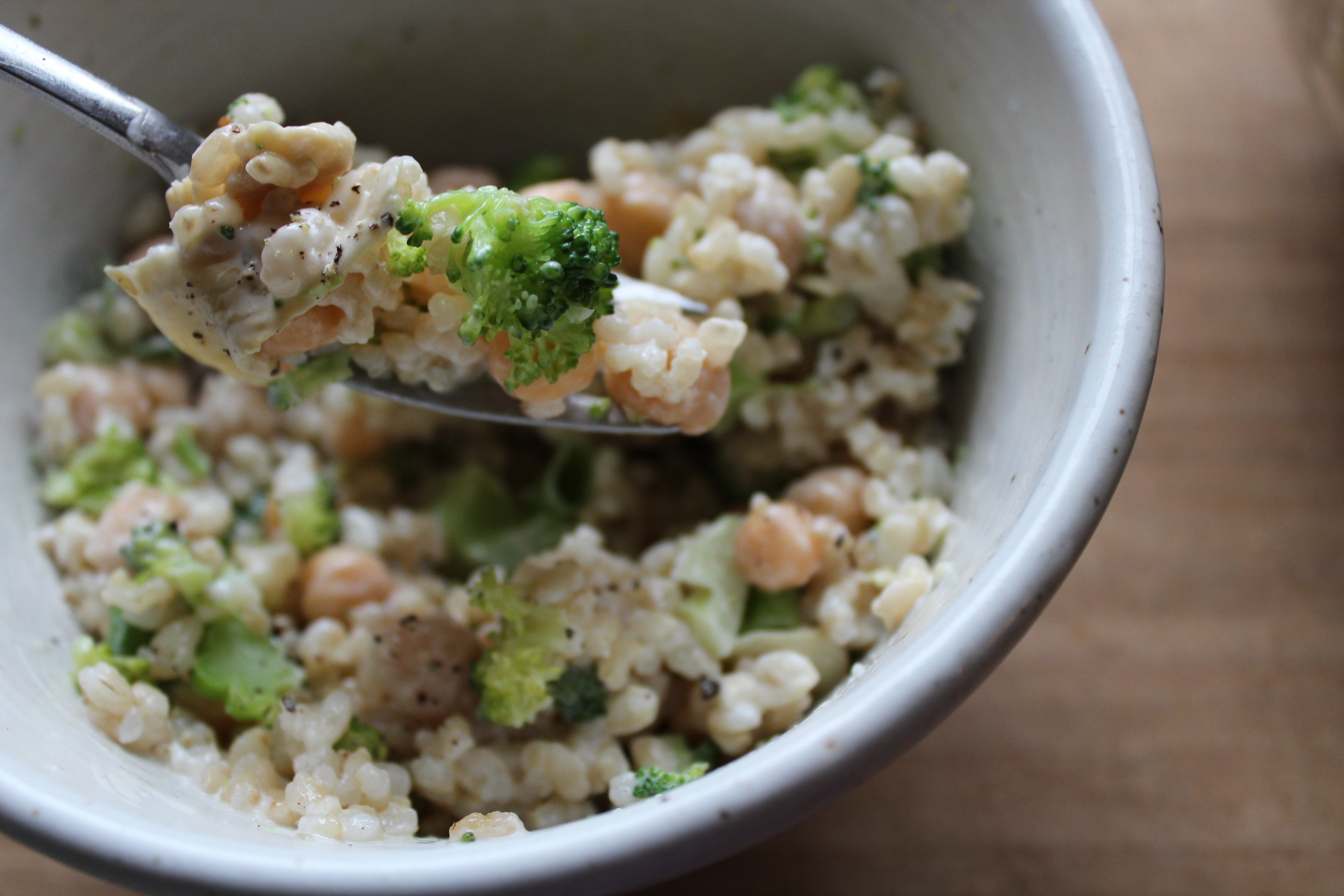 Speed it Up: You can make this ahead of time and serve it chilled, like a potatoe or chicken salad would be. However, I like it best at room temperature or warm, so if you need to make it in advance, I would make everything ahead of time, then heat up the rice and broccoli before mixing in the rest of the ingredients.