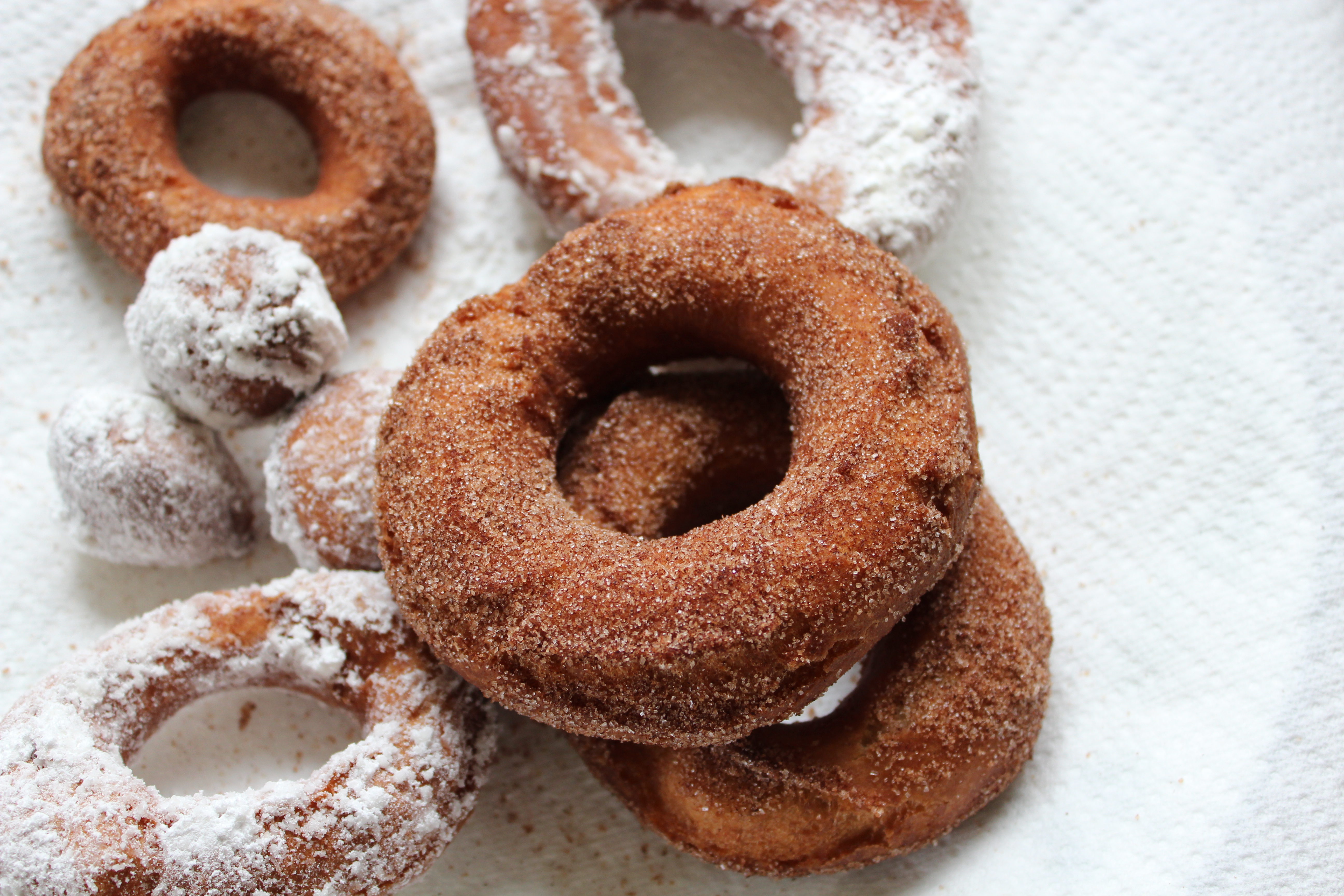 - Drain on paper towels for just a second before popping into the bowls of powdered sugar or cinnamon and sugar. Place back on paper towels and allow to cool until just past piping hot. Eat immediately.